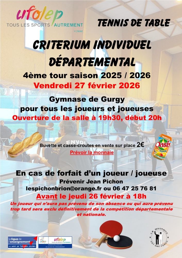 - Catégorie B : Compétition ouverte aux licenciés UFOLEP-Simple appartenance